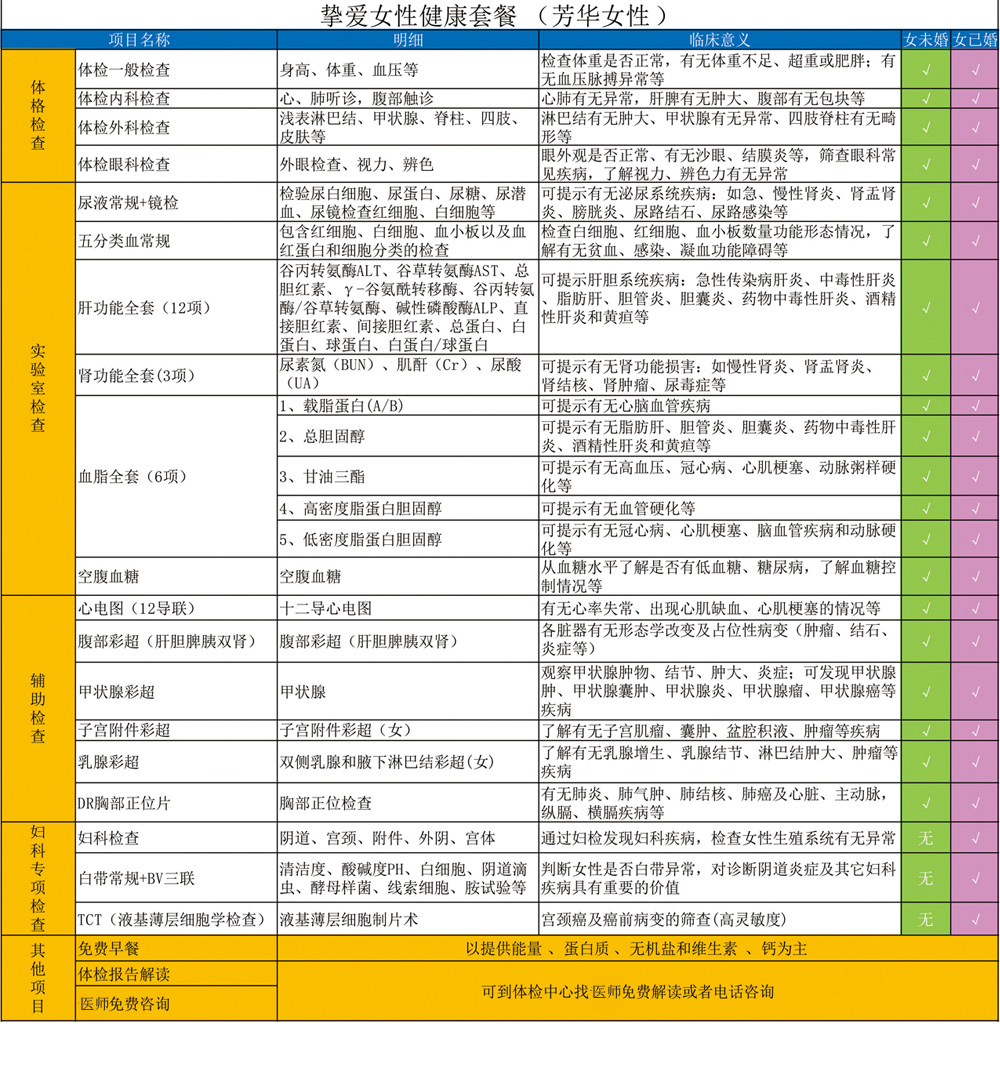 挚爱女性健康套餐(芳华女性)